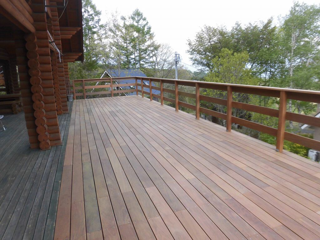 山梨県小淵沢 個人住宅でイペ材を使用したウッドデッキの工事を施工いたしました。