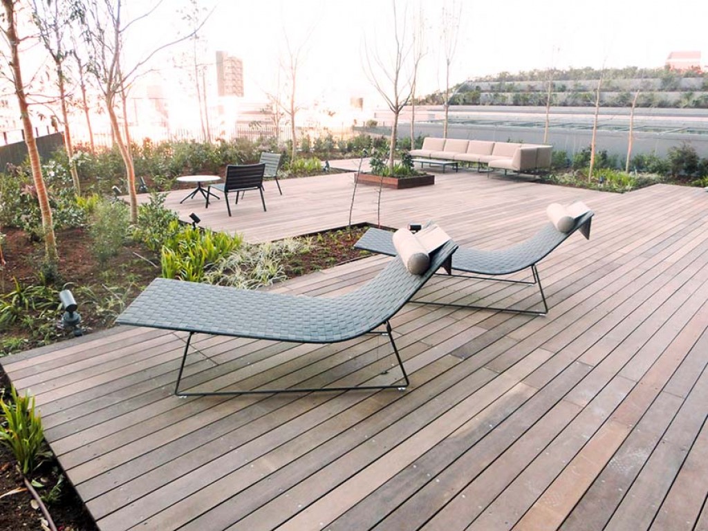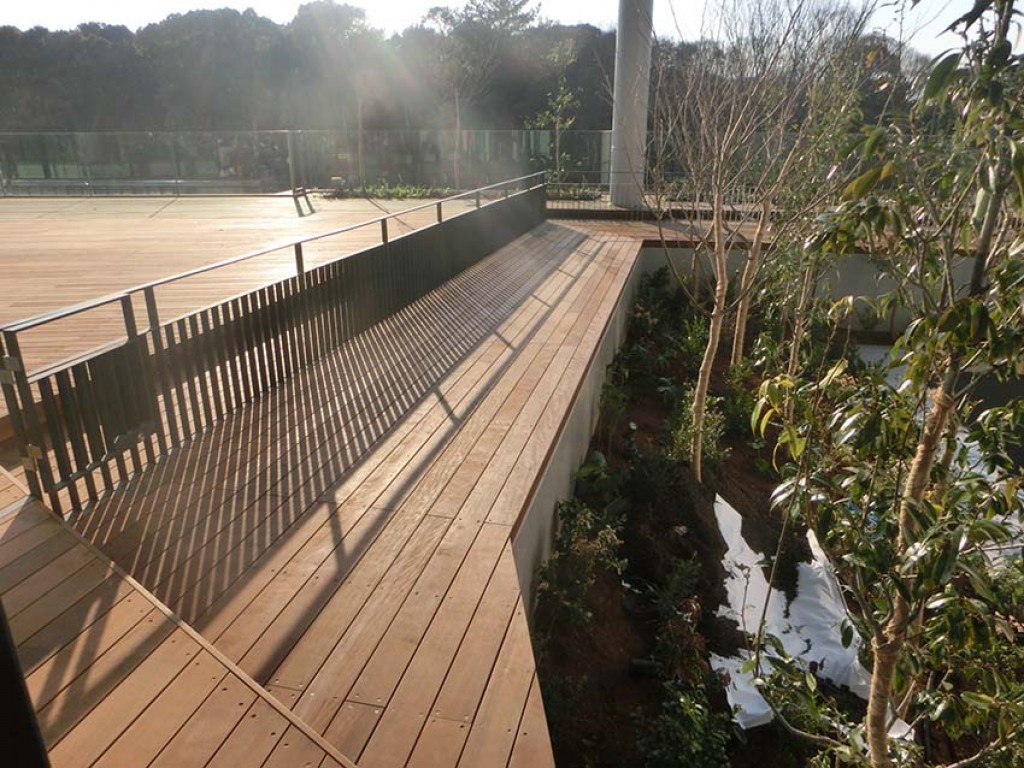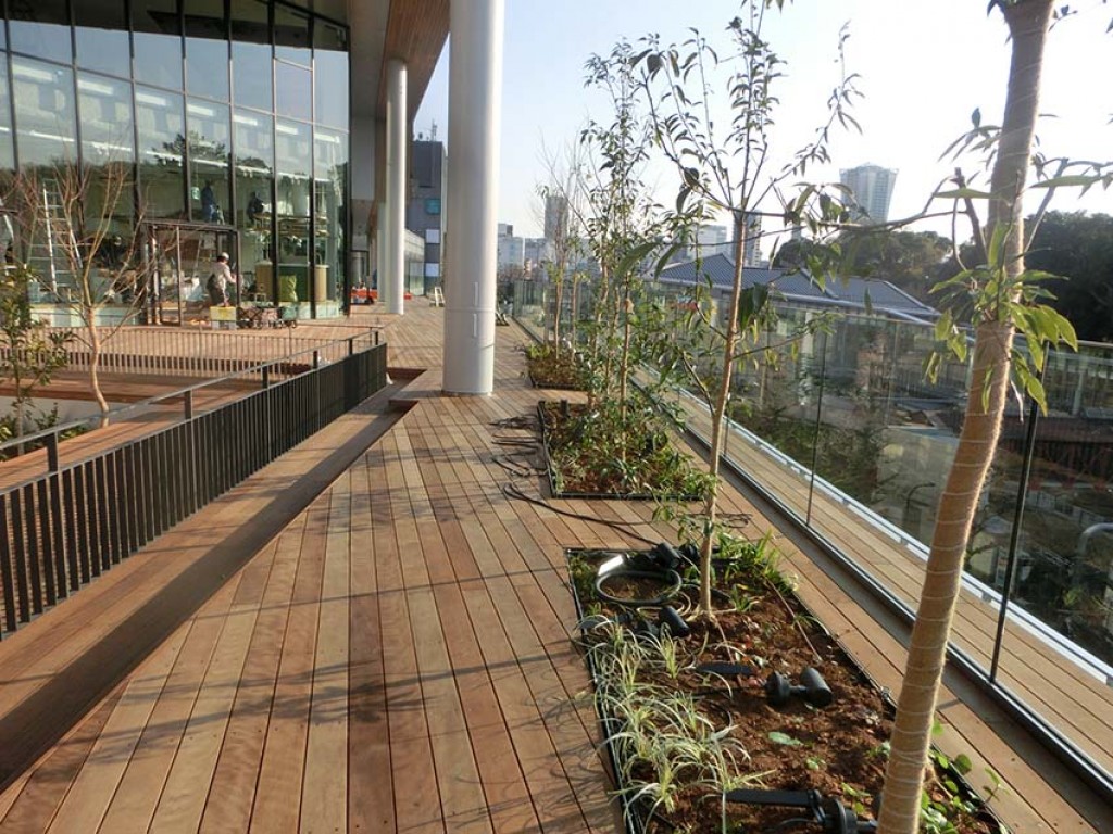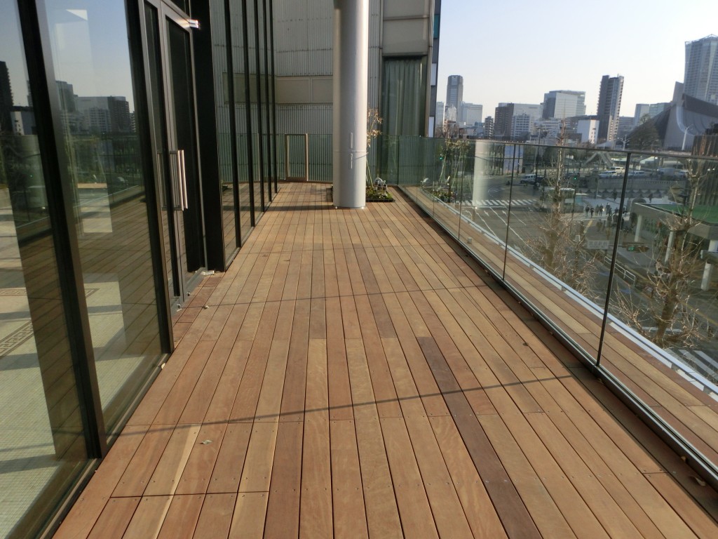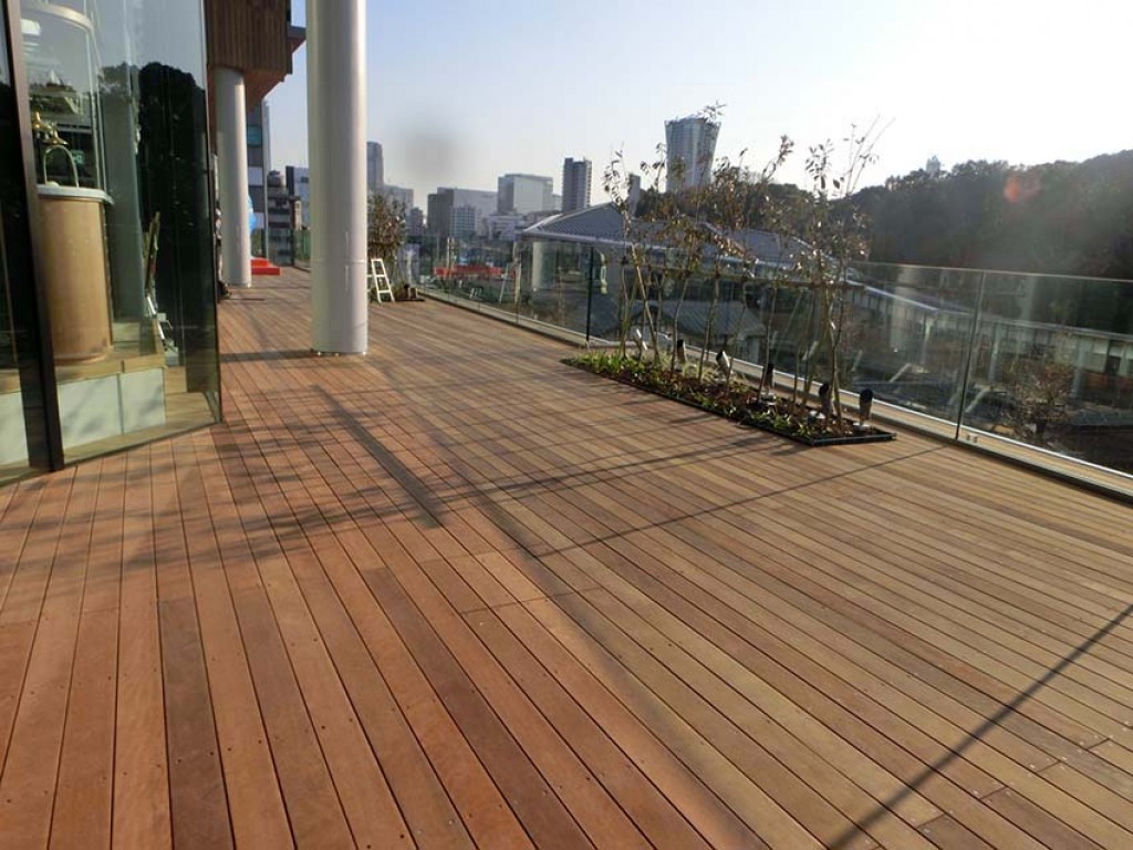 原宿駅前にオープンした複合施設デッキを施工いたしました。材料:グリーンハート施工:2020年