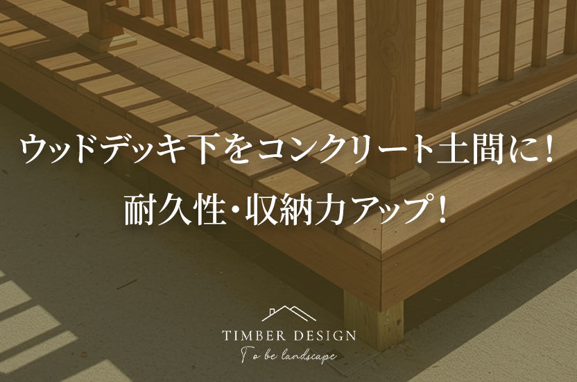ウッドデッキの下をコンクリート土間にするだけで、居住スペースの建物との一体感が生まれます。